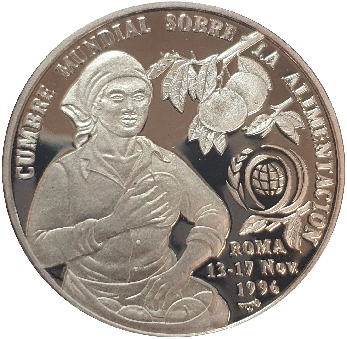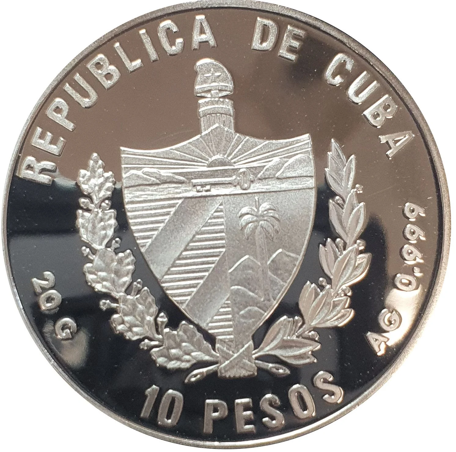 Cuban coat of arms with country name above, face value below, and weight/fineness on the sides.