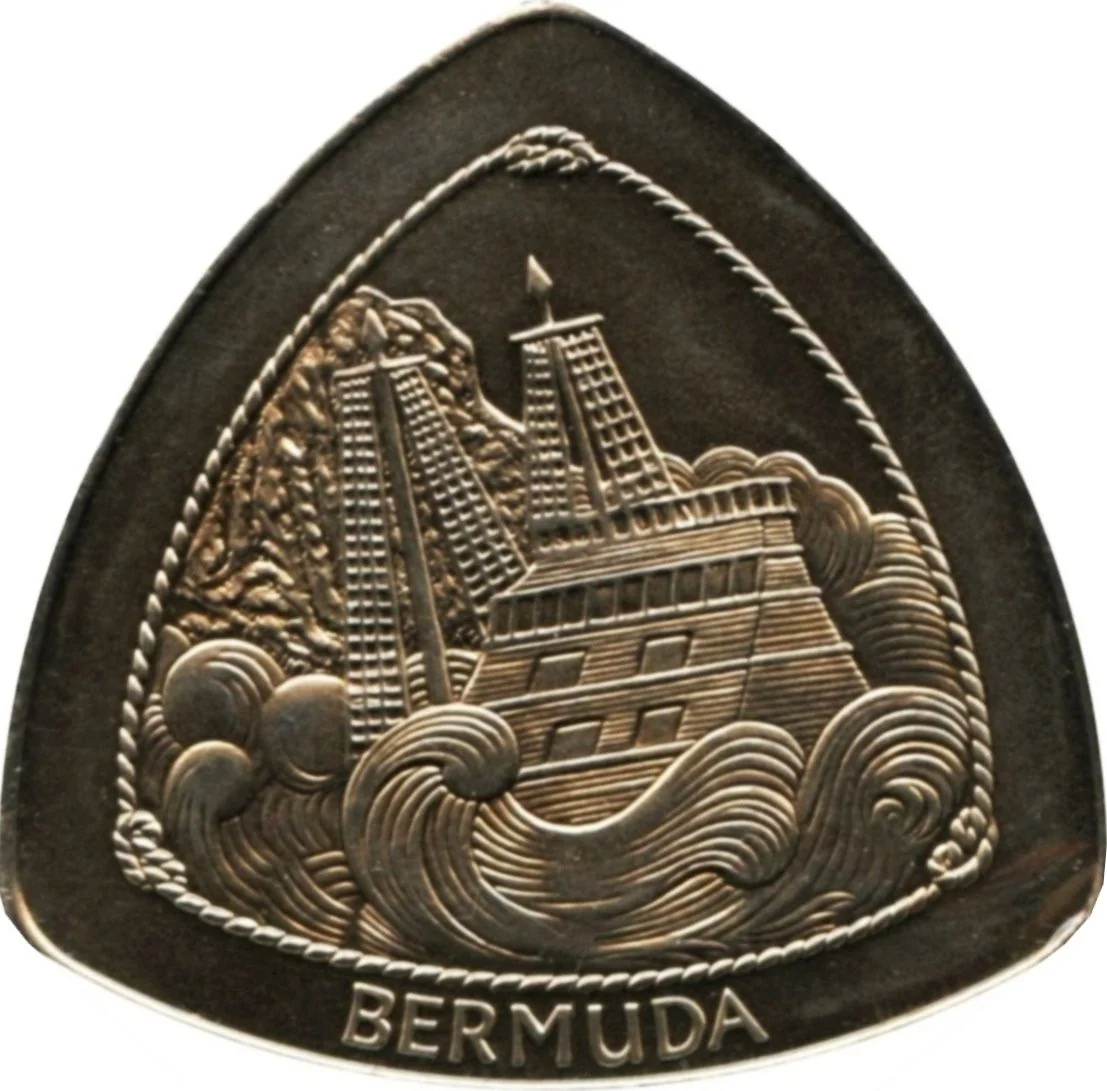 The Bermuda coat of arms, featuring the wreck of the "Sea Venture," bordered by a knotted rope.