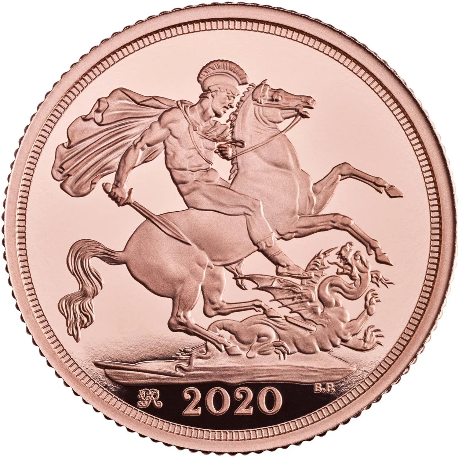 St. George slaying the dragon, with privy mark, date, and designer's initials in exergue.