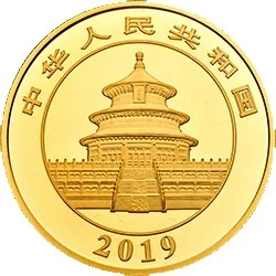 Latest panda coin image. Inscribed: purity, weight, and denomination.
