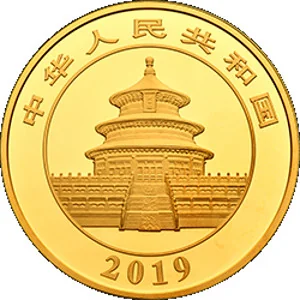 Latest panda coin image. Inscribed: purity, weight, and denomination.