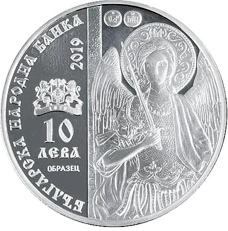Description: Front: Left to right, a semicircular inscription "БЪЛГАРСКА НАРОДНА БАНКА," the year "2019," the BNB emblem with "1879," the denomination "10 ЛЕВА," and an image of St. Archangel Michael.