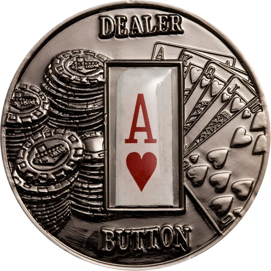 Vegas chips with a cut ace of hearts corner.