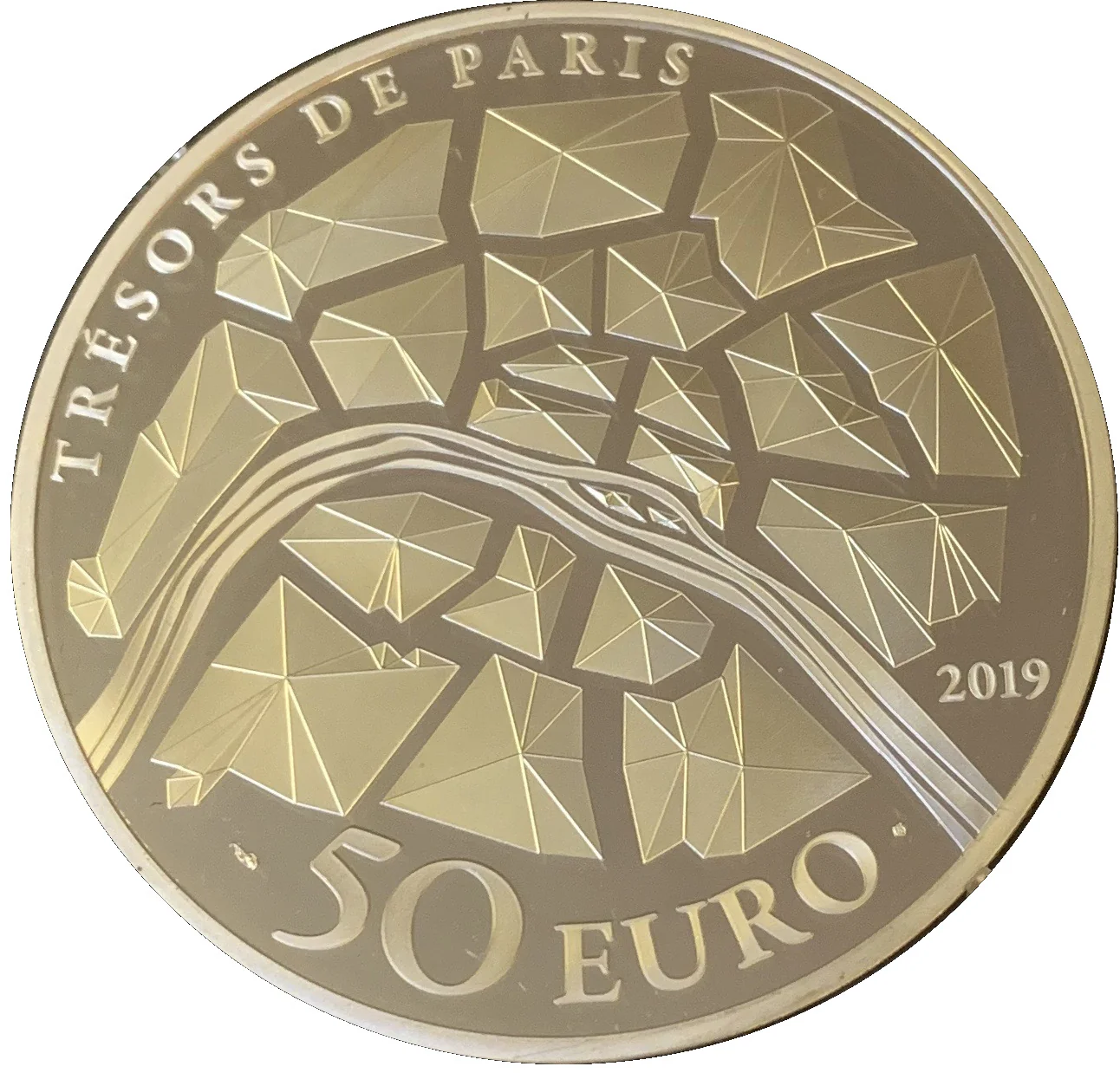 The reverse features a modern map of Paris with its districts depicted as small faceted pyramids.