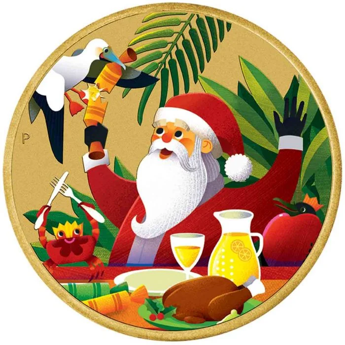 The reverse depicts Santa Claus with native Australian animals and foliage, along with the Perth Mint's 'P' mintmark.