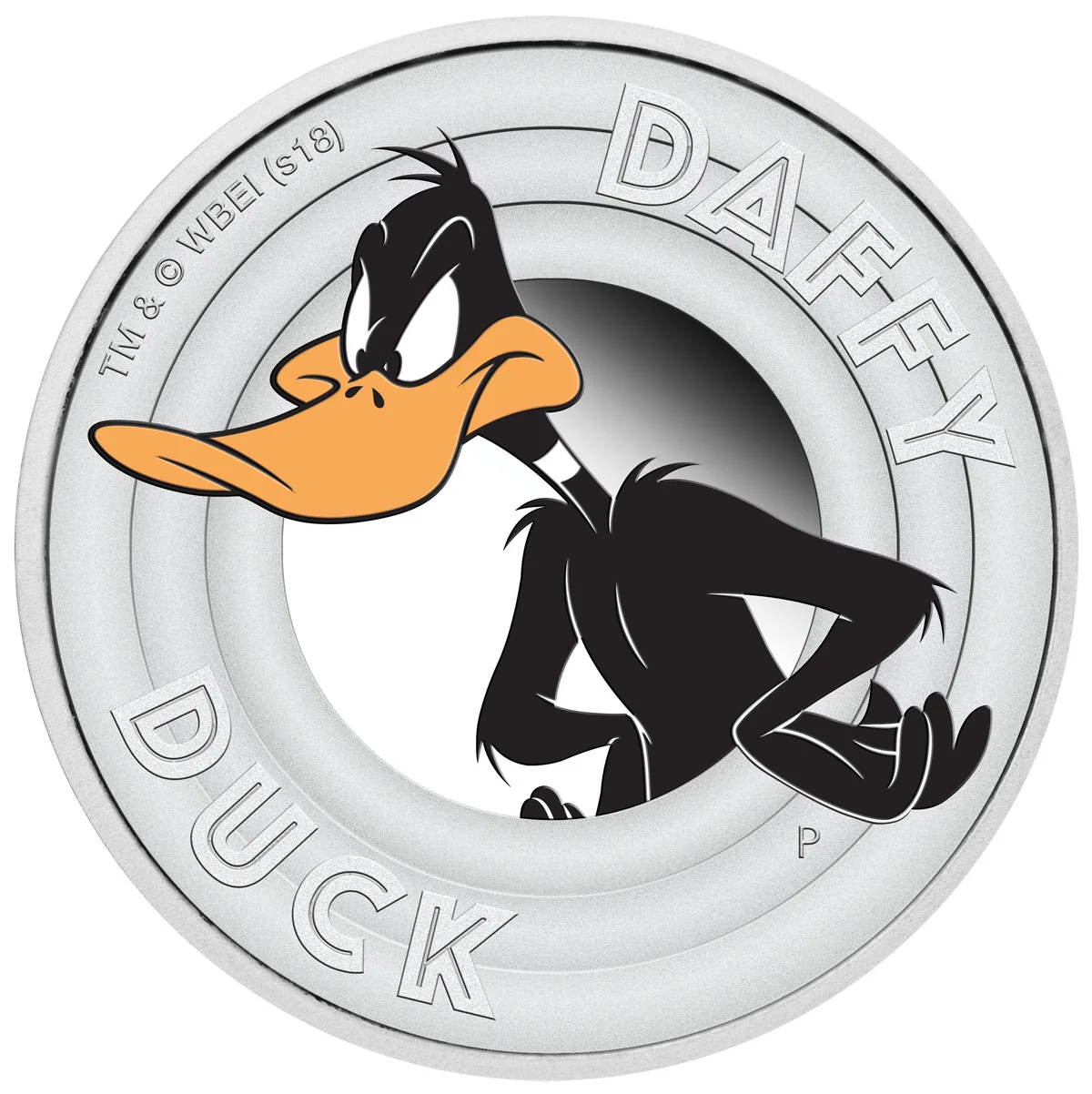 Daffy Duck peers from the Looney Tunes logo's rings.