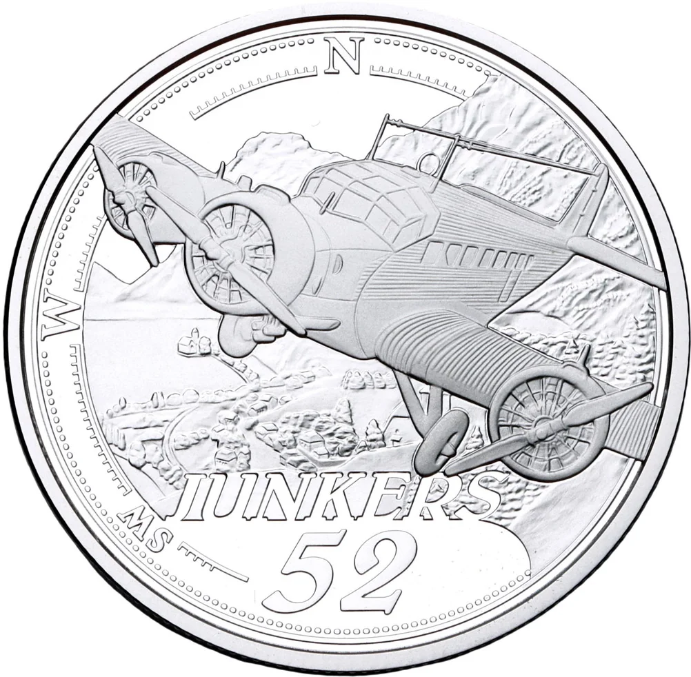 Country, year, value. Top and front views of a JU52 airplane with European and North American map sections in the background.