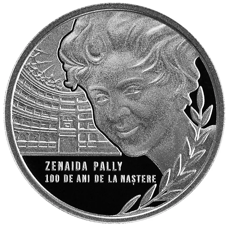 - Bottom: bold engraved text "ZENAIDA PALLY 100 DE ANI DE LA NAȘTERE".