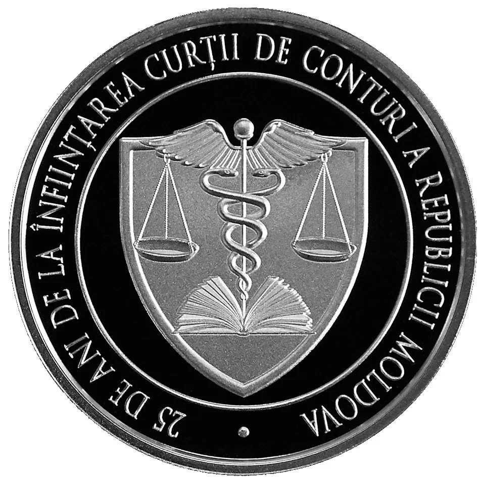 Exergue: "25 DE ANI DE LA ÎNFIINȚAREA CURȚII DE CONTURI A REPUBLICII MOLDOVA".