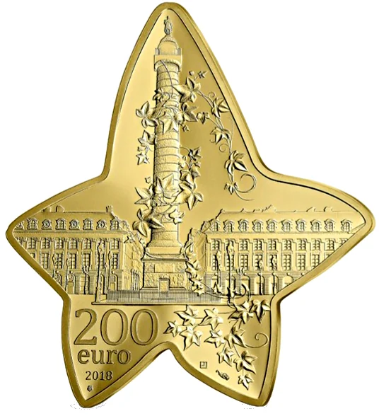 Vendôme Place, featuring its famous column entwined with triumphant ivy. The coin's face value is at lower left.