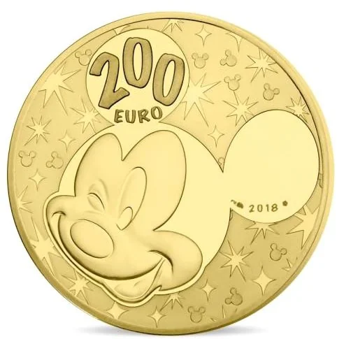 Polished Mickey winks mischievously against a starry Disney-patterned background. The face value is in his left ear, the date in his right.