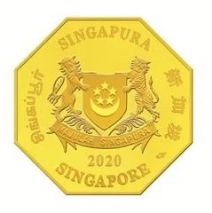 Emblem with date; 'Singapore' encircles it in English, Tamil, Chinese, and Malay.