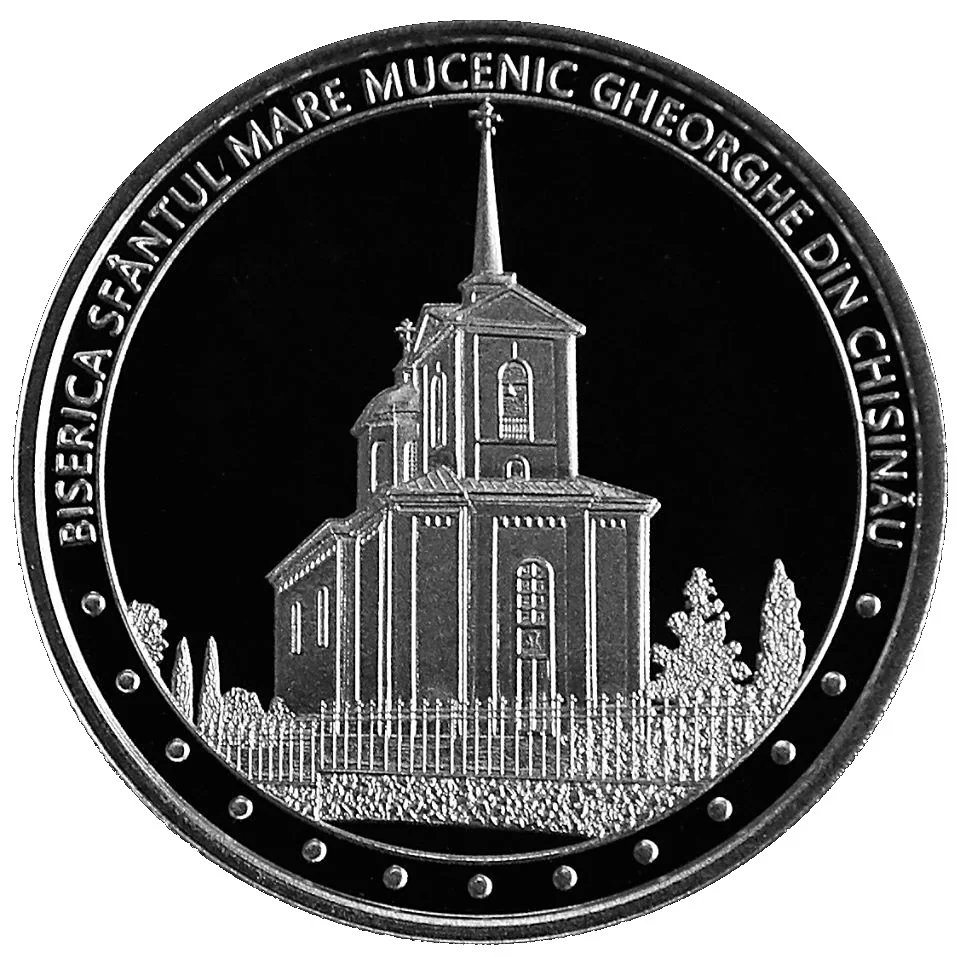 Exergue: "BISERICA SFÂNTUL MARE MUCENIC GHEORGHE DIN CHIȘINĂU" with decorative dots.