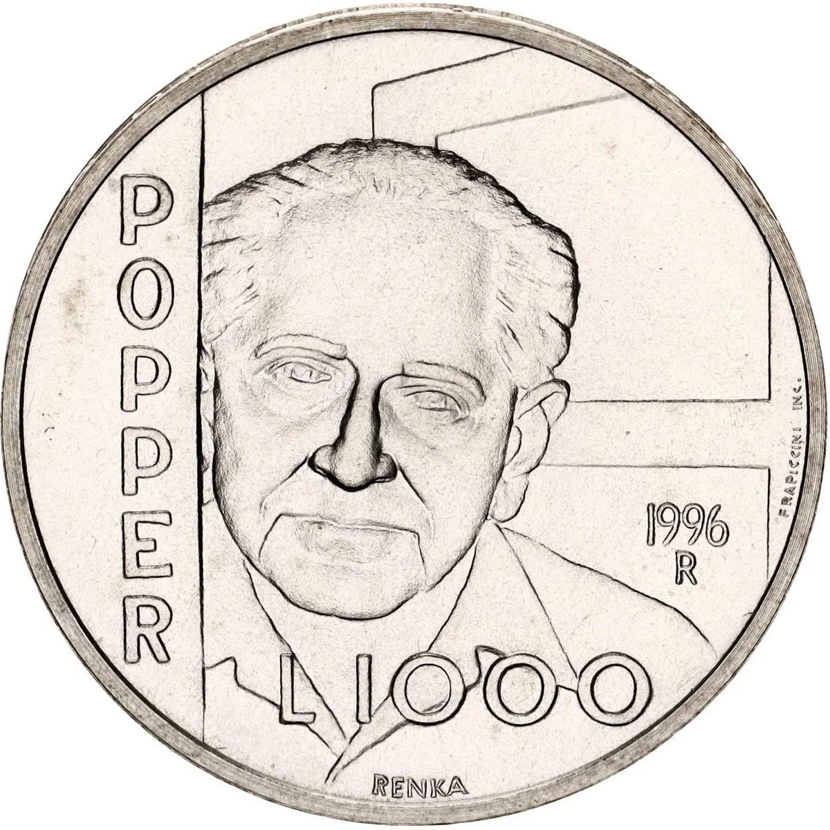 Popper's bust in a doorway, name at left.
