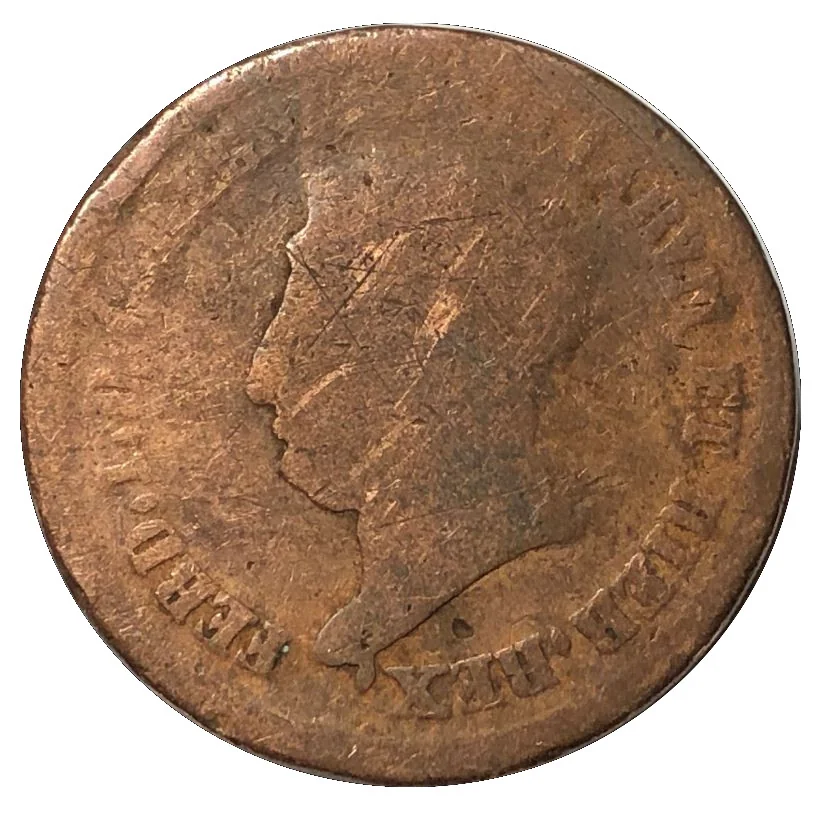 Translation: FERDINANDUS I, DEI GRATIA REGNI SICILIARUM ET HIEROSOLYMAE REX.