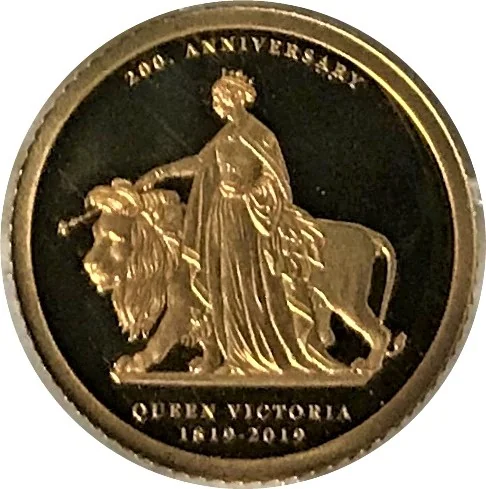 Queen Victoria as Una, facing left with orb and scepter, beside a lion.