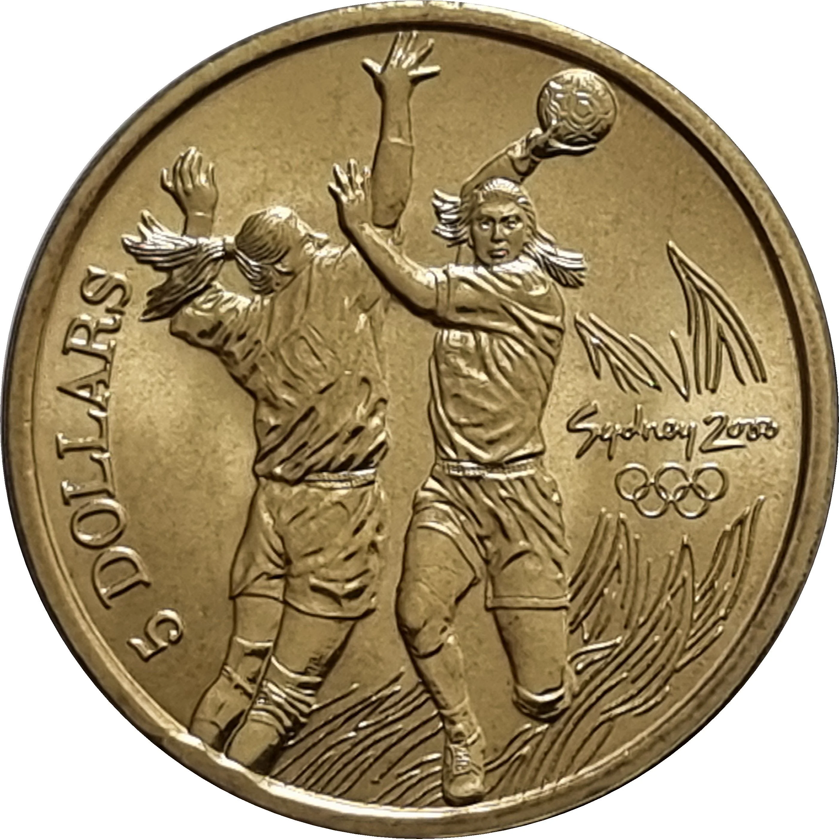 Two handball players in action, with Olympic Rings below the Sydney 2000 logo.