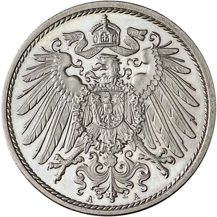 Imperial German Eagle with small shield (2nd type), mintmarks below.
