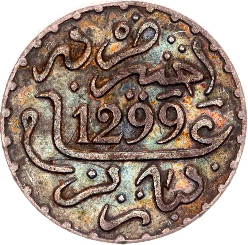 In 1882, Morocco's currency situation was characterized by a complex and unstable monetary system, reflecting the broader pressures on the Sultanate's sovereignty and economy. The country operated on a bimetallic standard in theory, with both gold (benduqi) and silver (dirham) coins minted by the state. However, the system was fragmented and chaotic. A plethora of foreign coins—especially Spanish silver duros (pesetas), British sovereigns, French francs, and Maria Theresa thalers—circulated freely alongside local issues, their values fluctuating wildly based on weight, metal content, and local market trust. This lack of a uniform, trusted national currency hampered trade and state revenue collection.