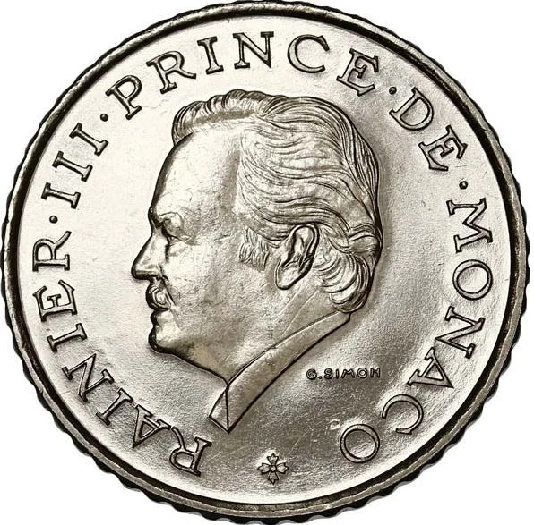 Prince Rainier III's monogram on Monaco's crowned coat of arms.