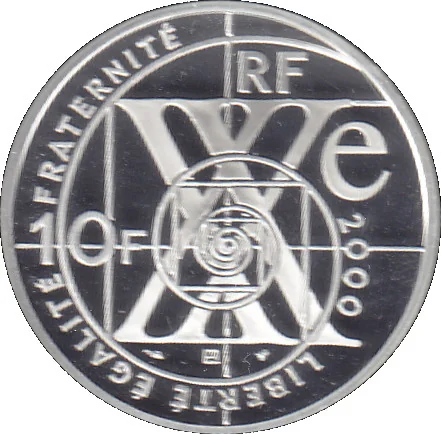 Spiral legend: "2000 LIBERTE EGALITE FRATERNITE". Center: "XXe". Top: "RF". Left: value.