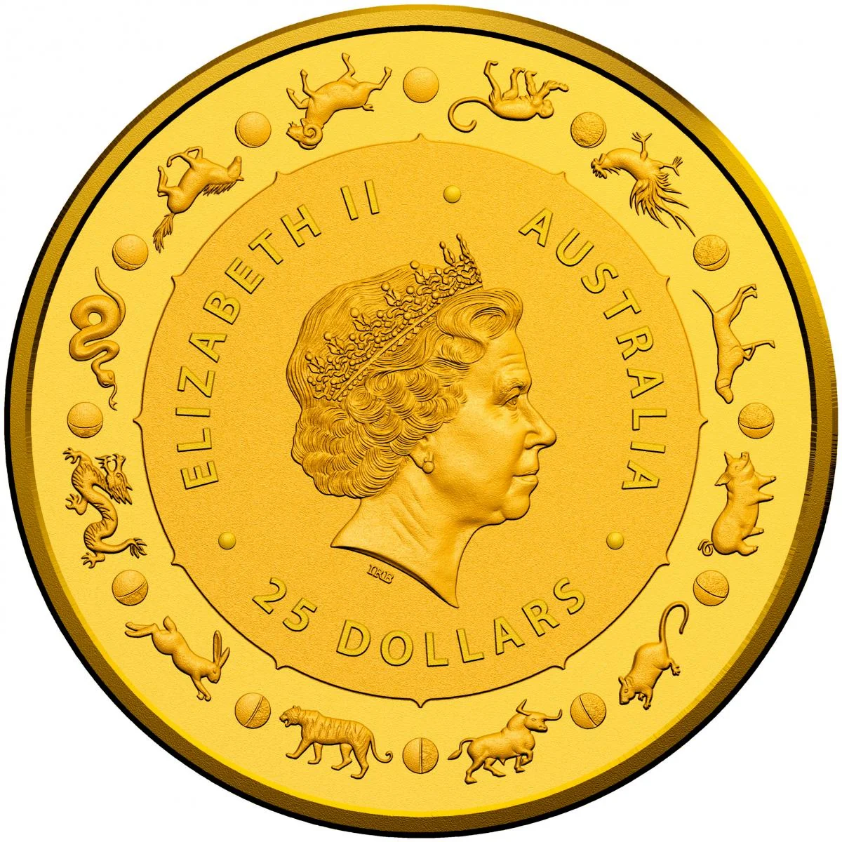 Fourth portrait of Queen Elizabeth II facing right, wearing the Girls of Great Britain and Ireland Tiara, encircled by twelve Chinese zodiac characters.