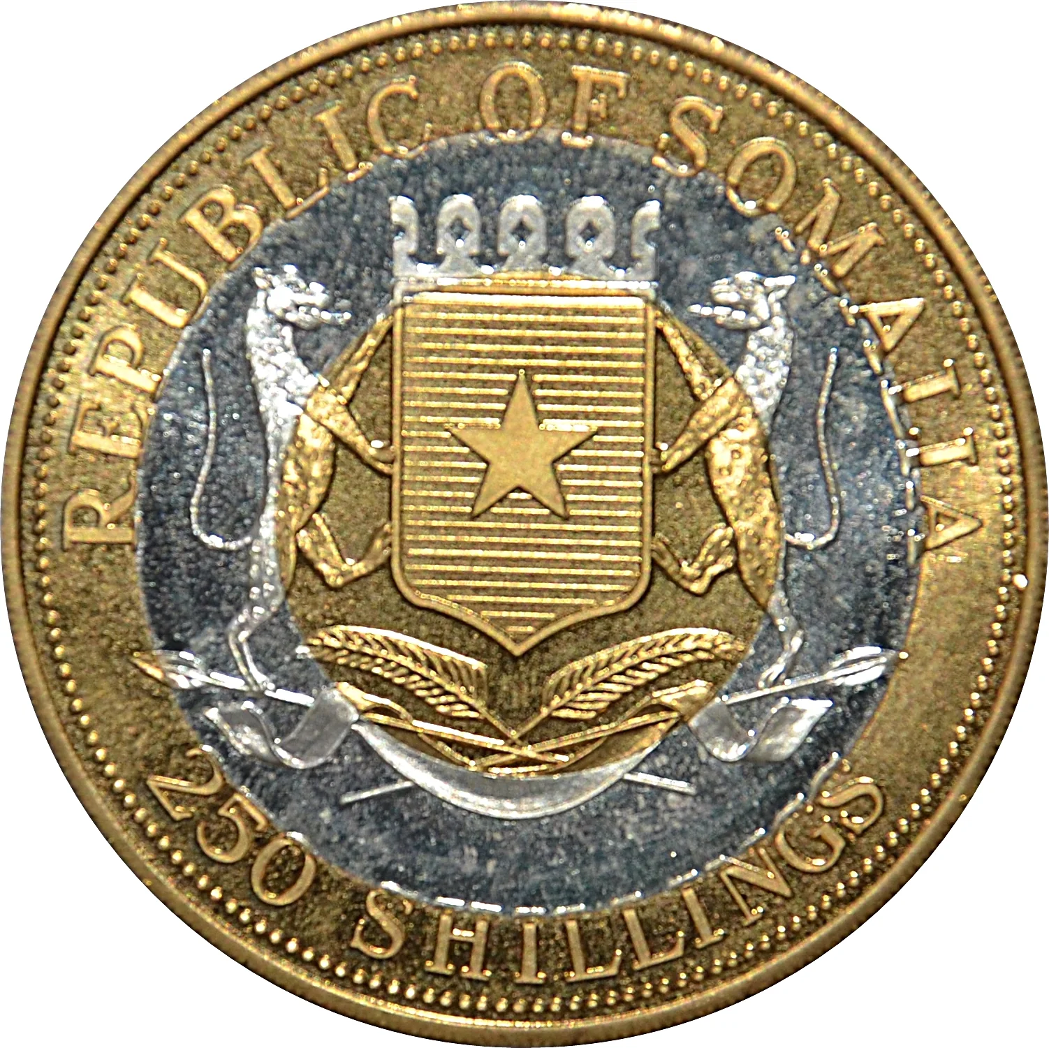 Somalia coat of arms with denomination.