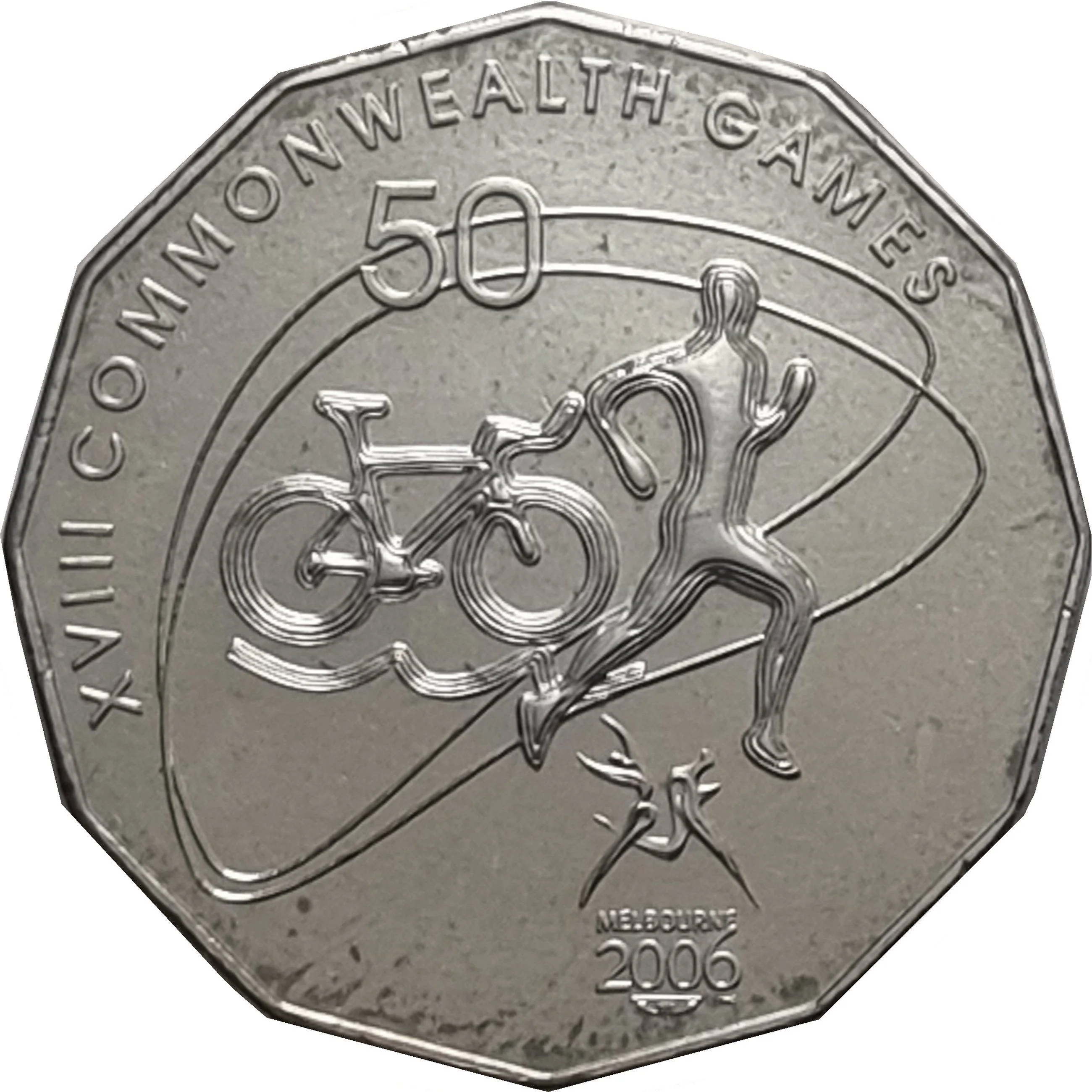 Triathlete with bike, Melbourne 2006 logo.