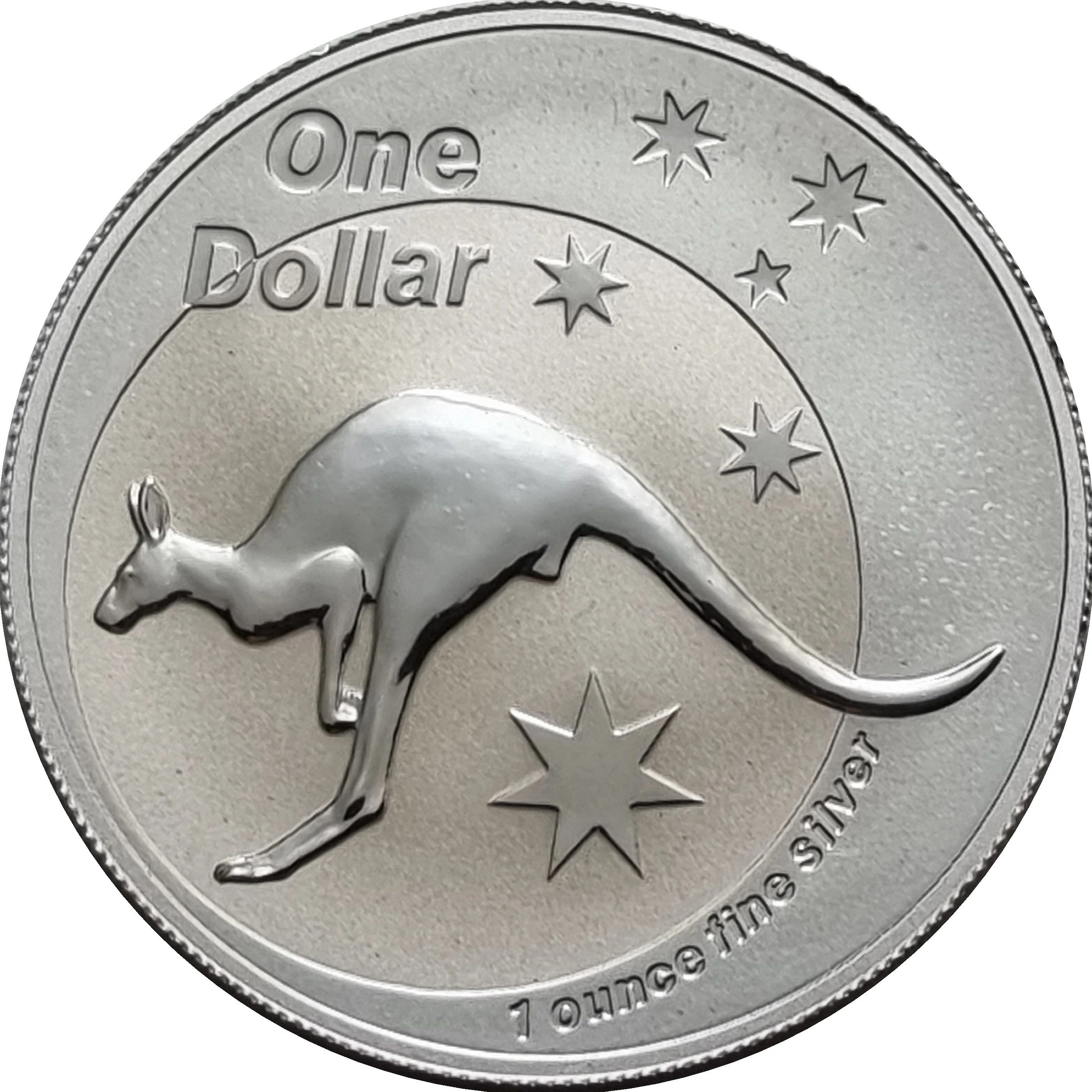 Kangaroo leaping left over a seven-pointed star, with the Southern Cross above.