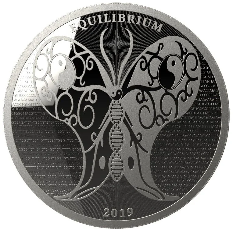 Queen Elizabeth II right-facing effigy by Ian Rank-Broadley. Double helix flanking. Weight and purity above, value below.