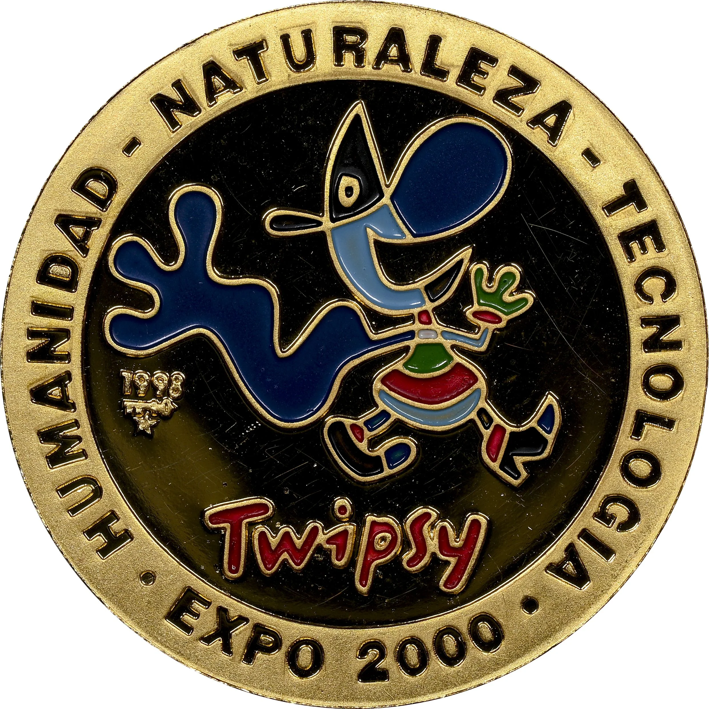 Twipsy mascot on right with name below. Event name and motto circle it. Mintmark and date on left.