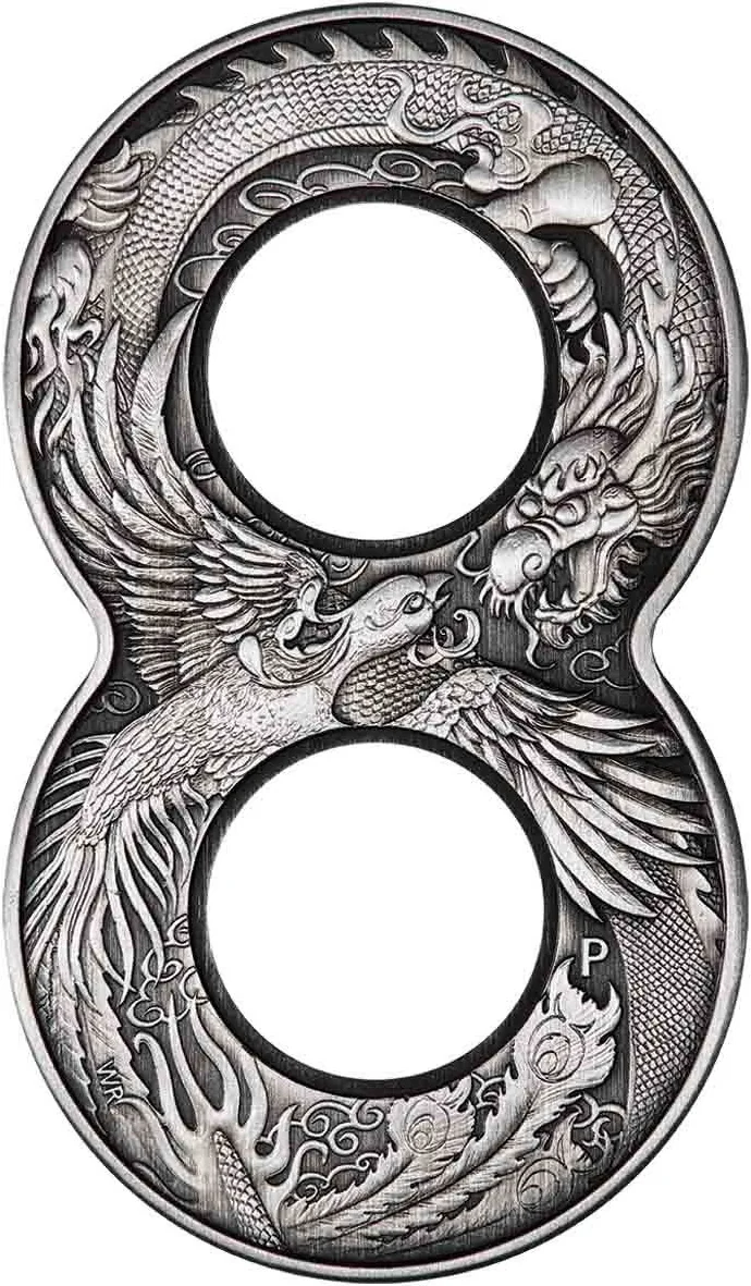 A dragon and phoenix amid stylised clouds, intricately detailed.