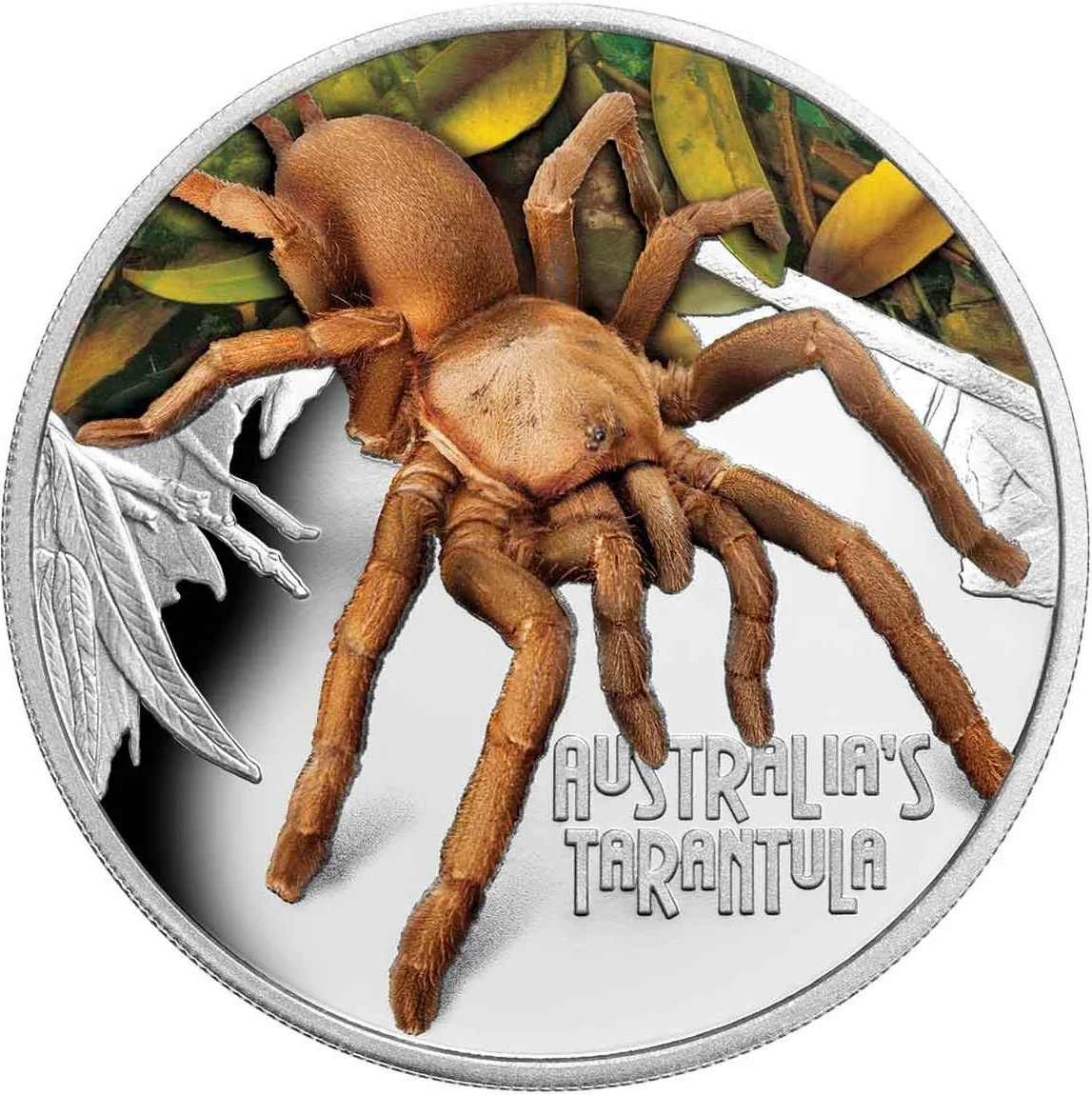 A tarantula sits before a leafy backdrop, representing its diverse habitats across Australia.