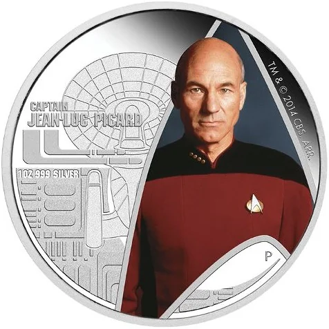 Sir Patrick Stewart as Captain Picard from Star Trek: The Next Generation, with the U.S.S. Enterprise.