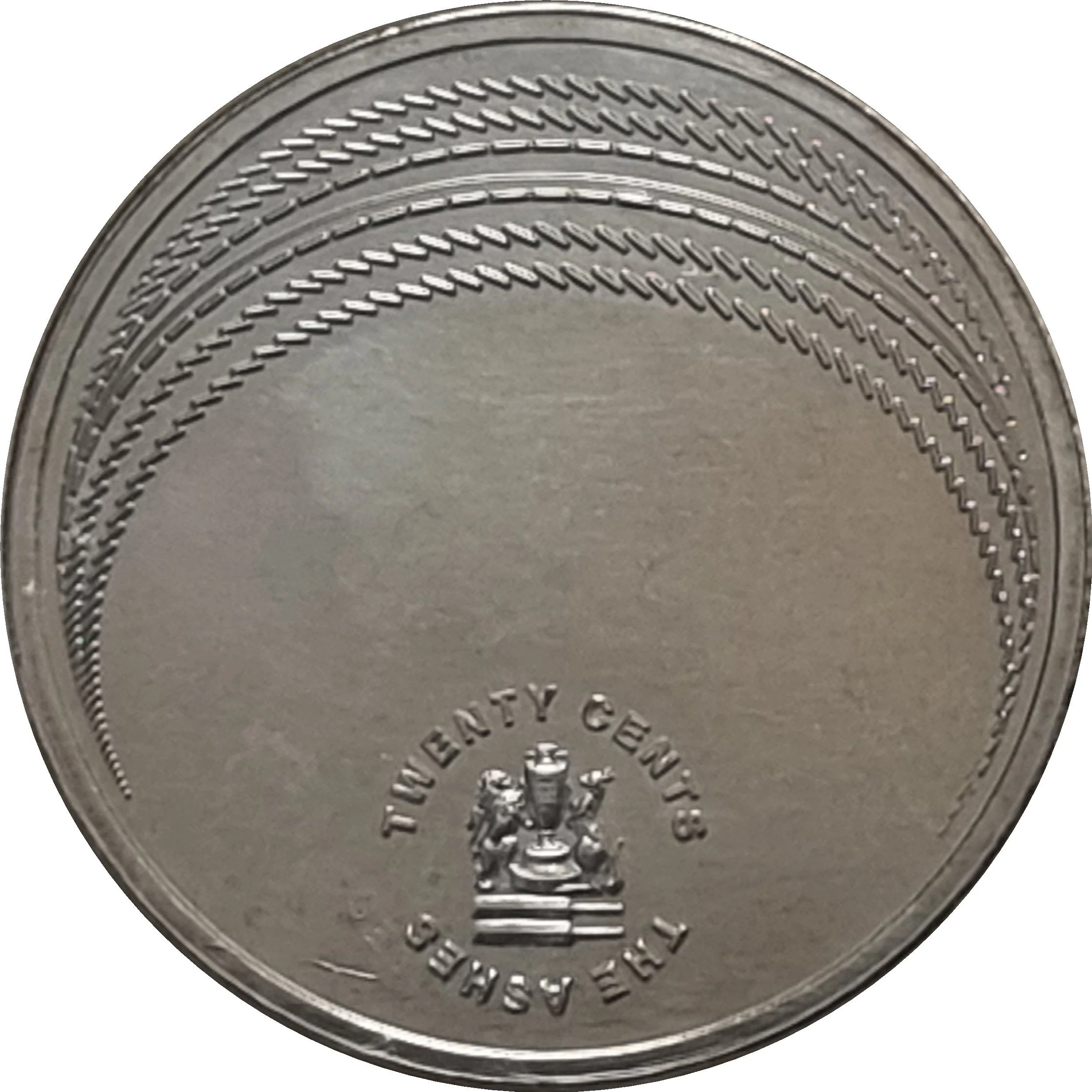 Lion, urn, kangaroo, and two cricket bats with ball stitching.