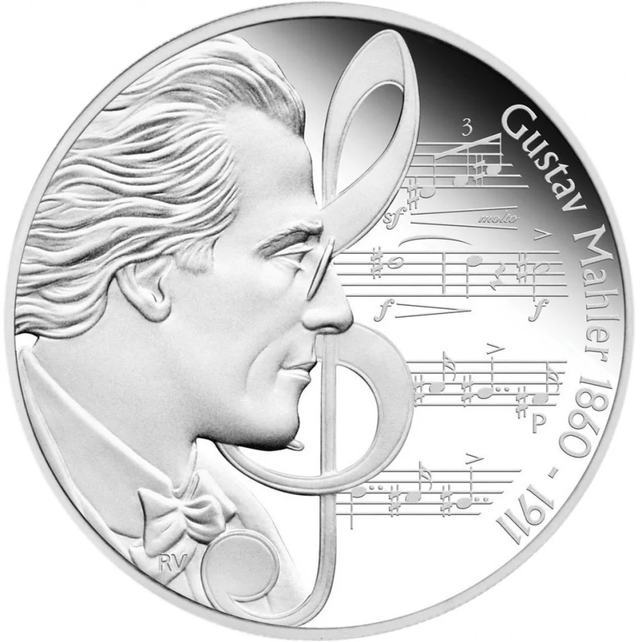 Gustav Mahler with a treble clef and music notes.