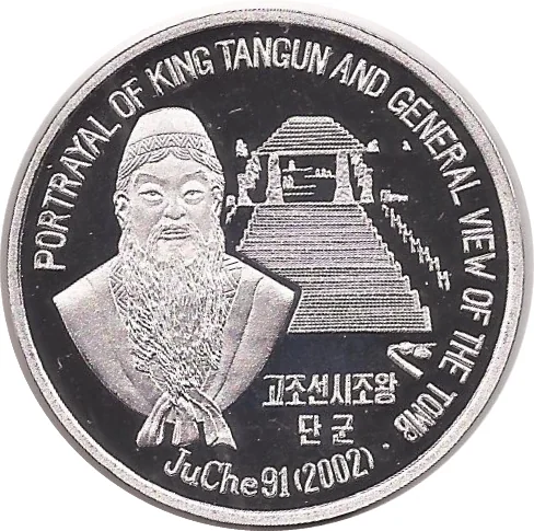 King Tangun bust and tomb. Circular inscription, date below with central dot.