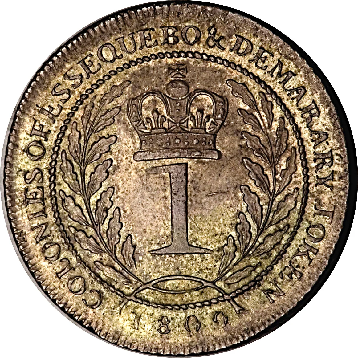 In 1809, the colonies of Demerara and Essequibo (formally united as the Colony of Demerara and Essequibo in 1812) were under British occupation, a status that had begun in 1803 and was made permanent by the Anglo-Dutch Treaty of 1814. This transitional period created a complex currency situation. The official unit of account remained the Dutch guilder, reflecting the colonies' long history under the Dutch West India Company, but the physical currency in circulation was a chaotic mixture of Spanish silver dollars (pieces of eight), Portuguese gold joes, British guineas, and local paper money issued by planters and merchants.