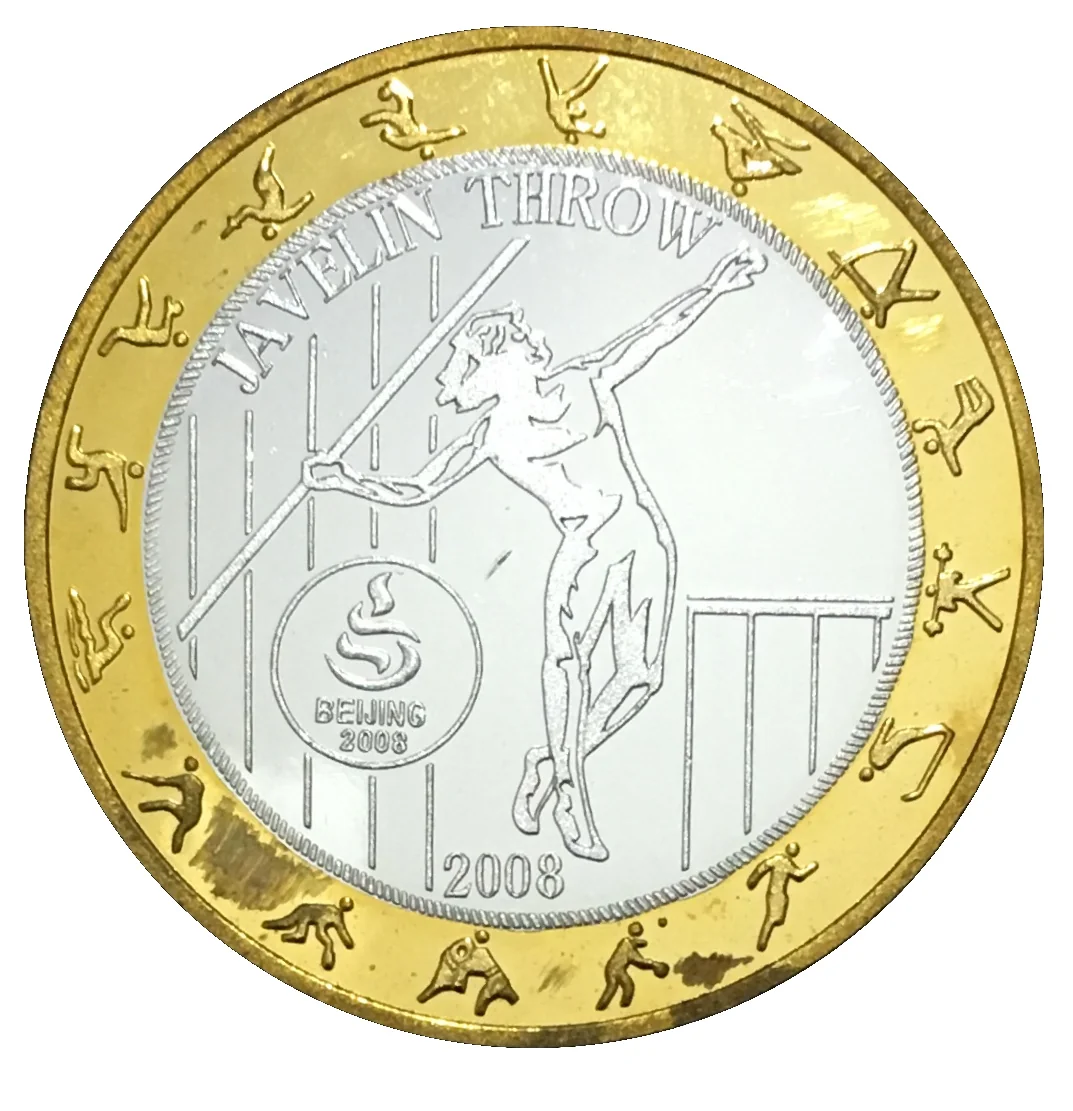 Javelin thrower, 2008 Beijing Olympics emblem left, date below.