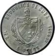Cuban coat of arms with country name above, face value atop, weight and fineness on the sides.