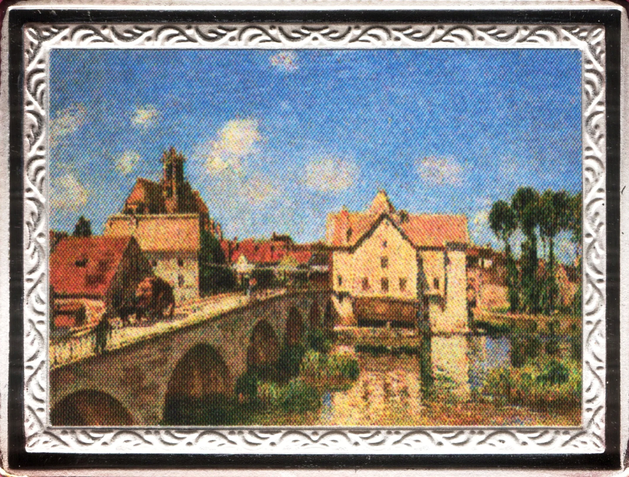 Sisley's "The Bridge at Moret" in a decorated frame.