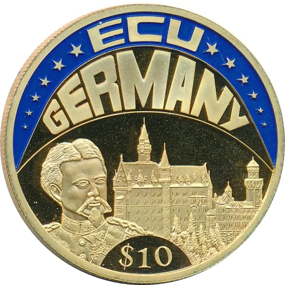 Twelve stars, bust of Ludwig II, Neuschwanstein Castle right.