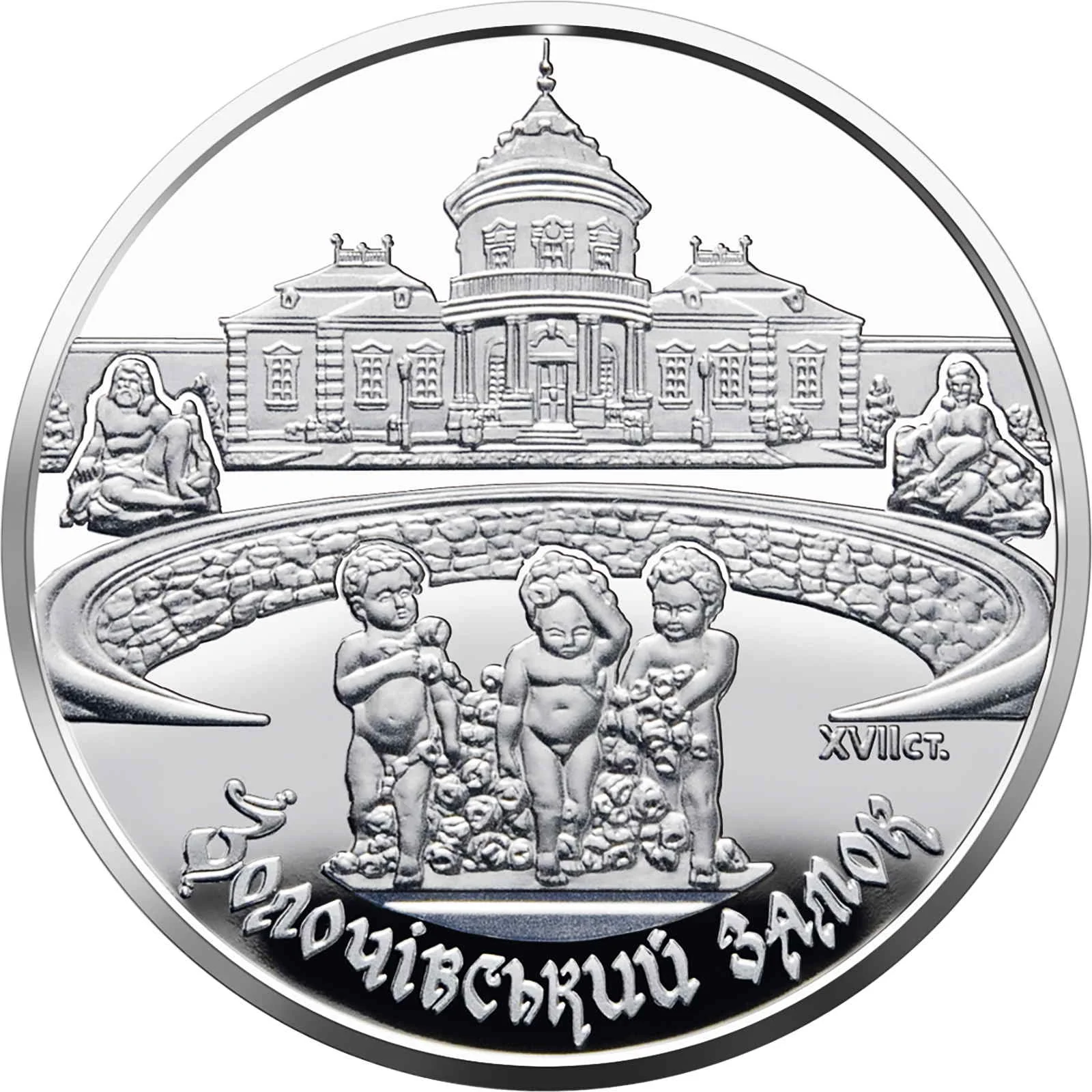 The castle courtyard features a fountain and a sculpture of three cupids. The Chinese Palace stands in the background, flanked by statues of Neptune (left) and Aphrodite (right). Legends: "ЗОЛОЧІВСЬКИЙ ЗАМОК" (below) and "XVIІ ст." (to the right).