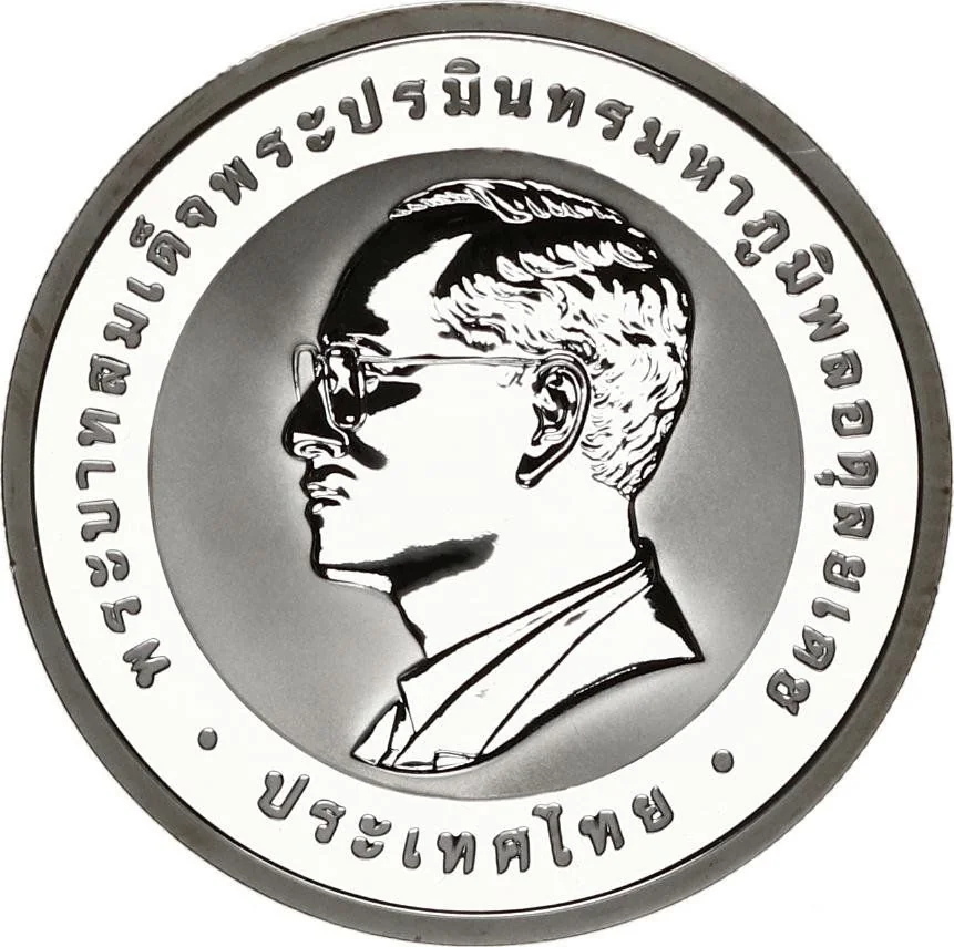 Bust of King Rama IX, left profile.