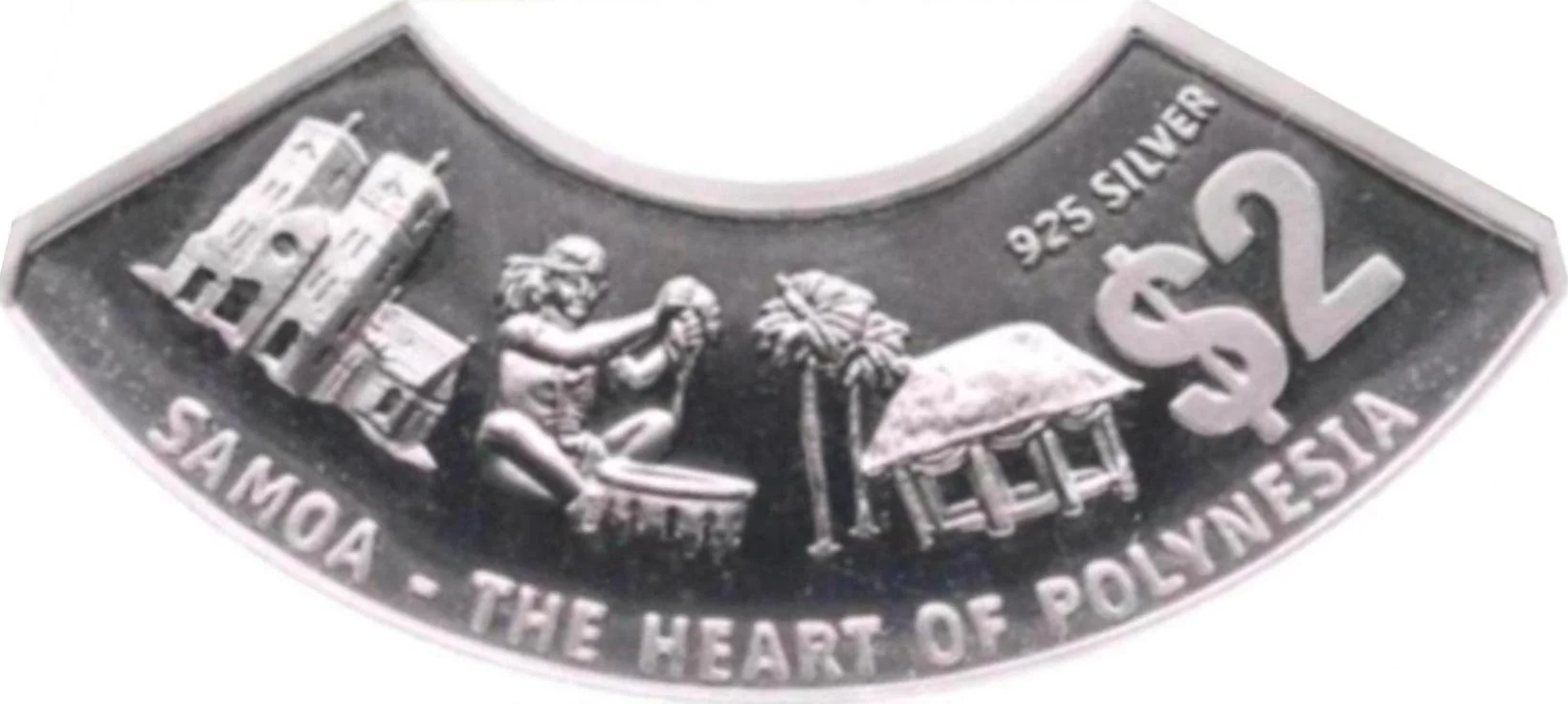 Three scenes: building, man stirring kava, palm trees by hut. Value at right.