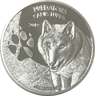 Wolf image beside its footprint, with date, purity, and weight noted.