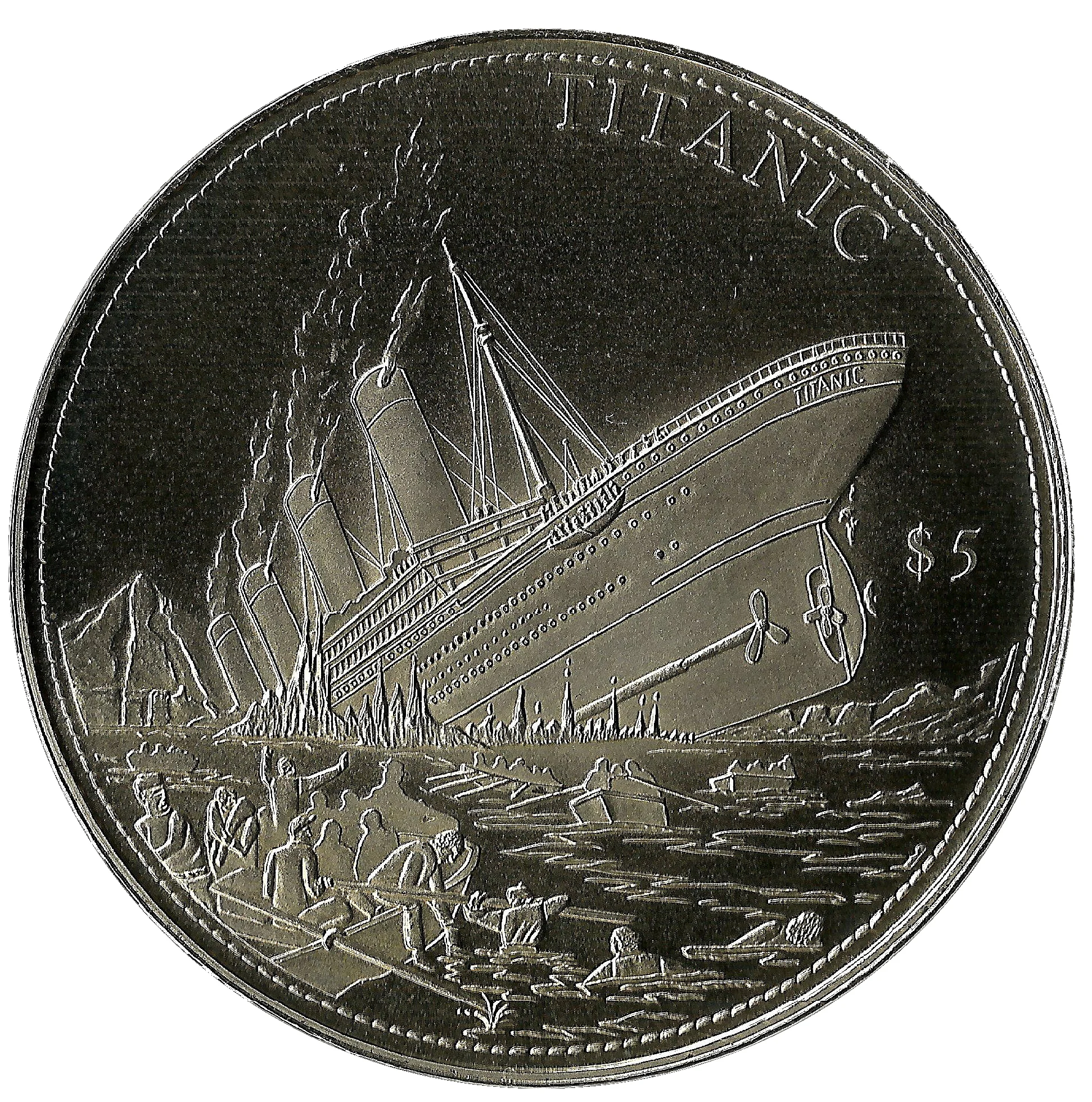 Titanic sinking. Lifeboats escaping. Face value.