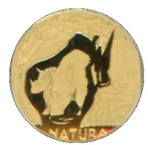 Rhinoceros drinking in a field, within its outline. NATURA below.