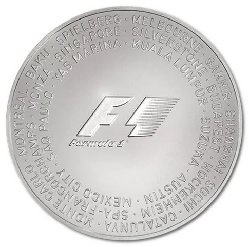 Description: All 21 circuits arranged chronologically around the central F1 logo.