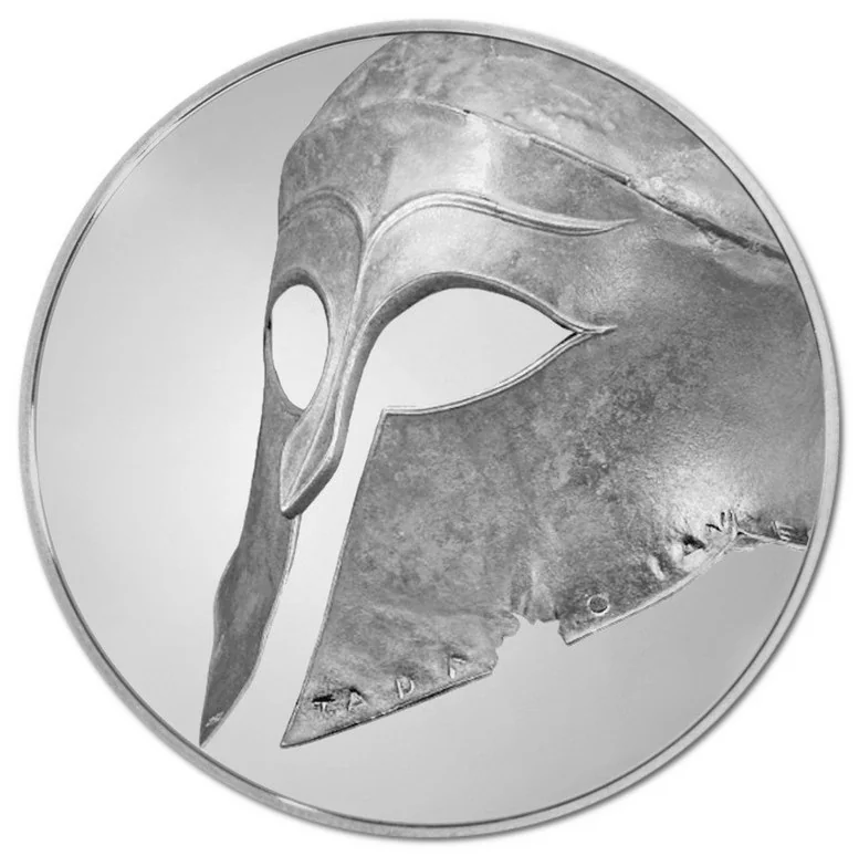 Bronze Corinthian helmet, c. 460 BC. Inscribed as a dedication to Zeus by the Argives, from spoils taken from the Corinthians.